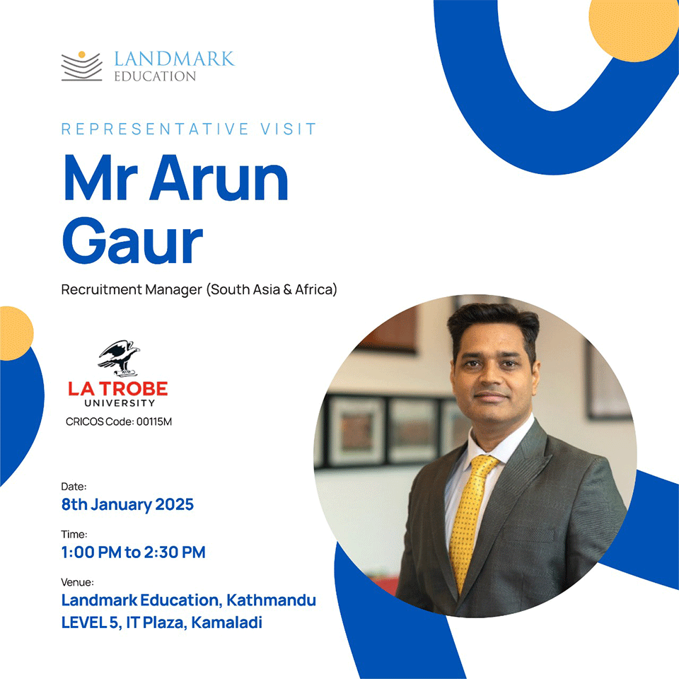 Landmark Education invites you to an exclusive session with Mr. Arun Gaur, Recruitment Manager (South Asia & Africa) at La Trobe University. Gain insights into La Trobe’s top-ranked programs, scholarships, and career opportunities. This is your chance to clarify all your queries and kick-start your journey toward a successful academic future in Australia.